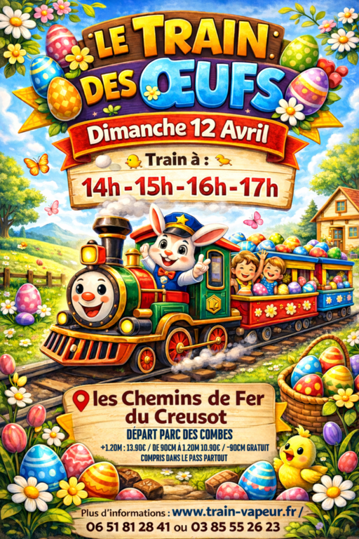 Venez cèlèbrer les 4, 5 et 6 Avril 2026 Pâques á bord du Train des Combes et offrez á vos enfants une expèrience unique !